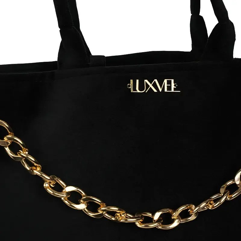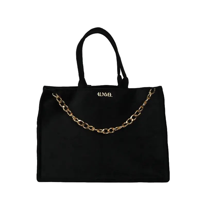 Shopper Tote with two handles at the top and two inner compartments with zipper. includes a detachable zipper pouch and a chain-extended trine pouch. Lined as the same exterior fabric.